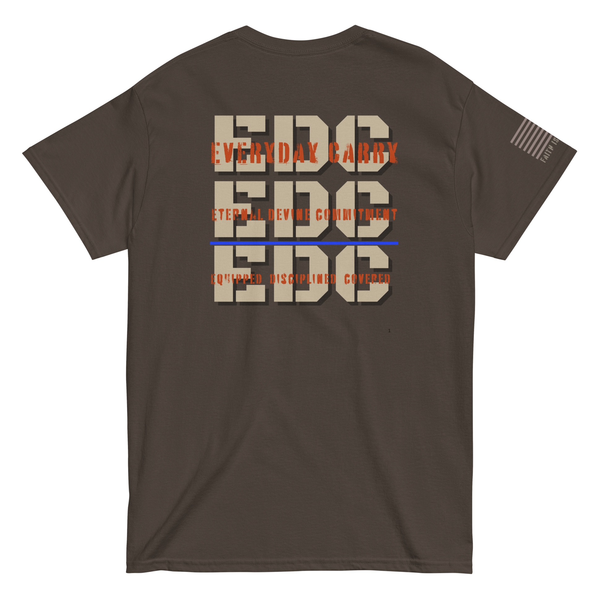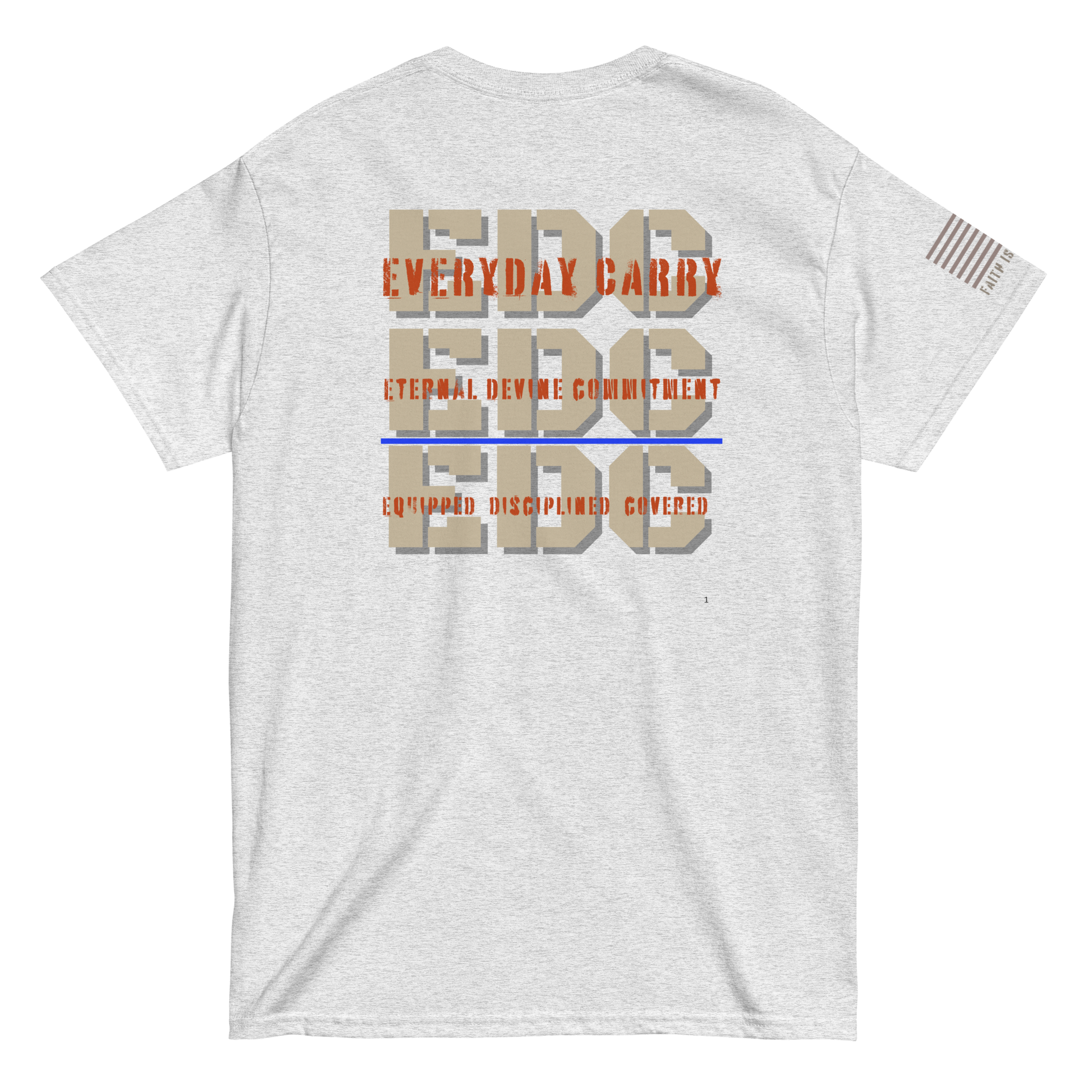 EDC:  You don’t leave the house without it. Wallet, keys, blade—but above all, faith. Faith Is My EDC is for the ones who know spiritual readiness is the ultimate carry. Whether it's chaos or calm, this tee is your declaration: you’re always equipped, always prepared.