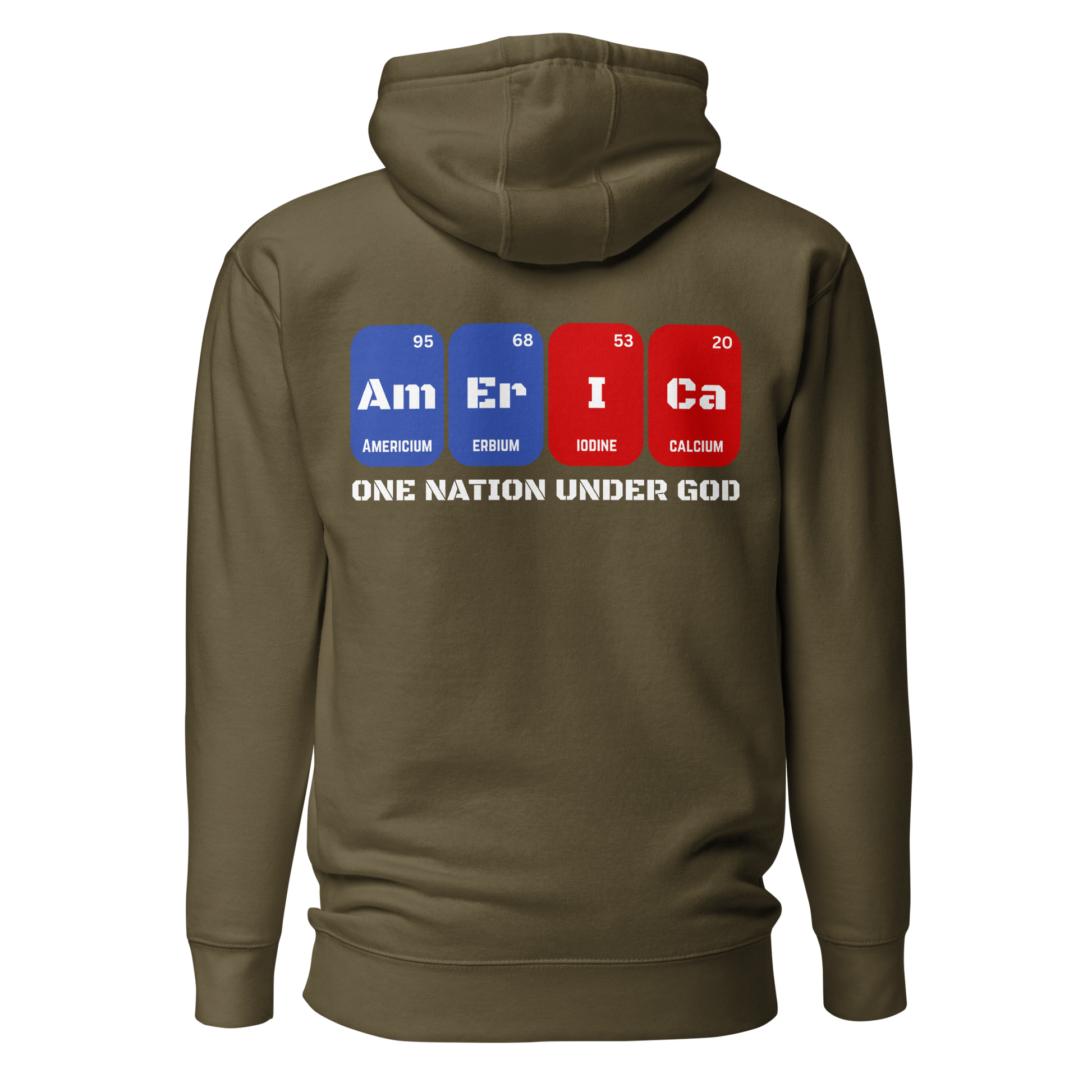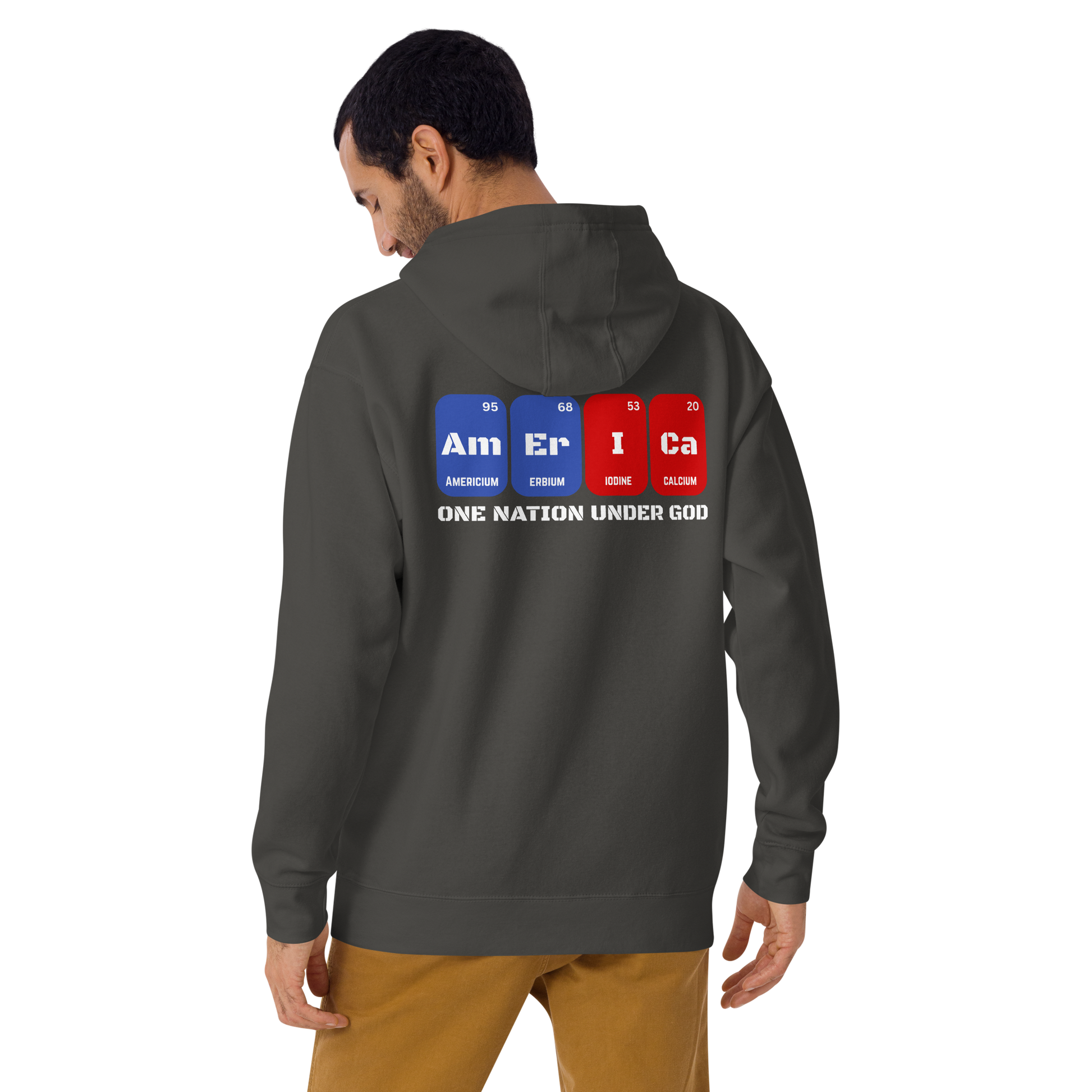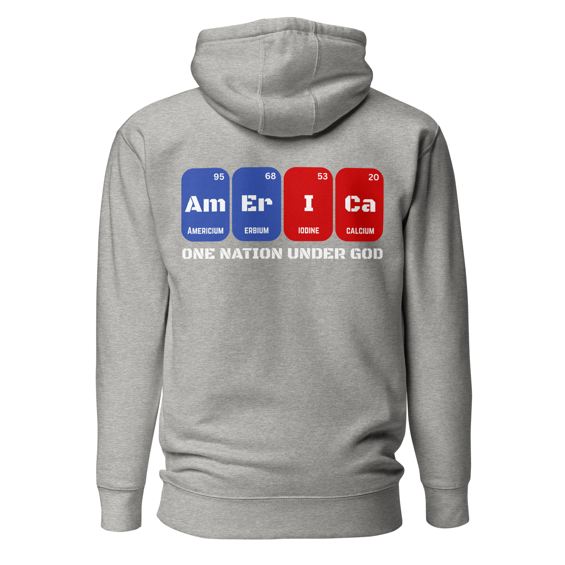 This isn’t just chemistry—it’s conviction. The Element Hoodie spells “AMERICA” using stylized periodic table blocks, transforming science into a street-level symbol of faith, freedom, and grit. Every letter evokes order, purpose, and legacy—just like the country it represents.