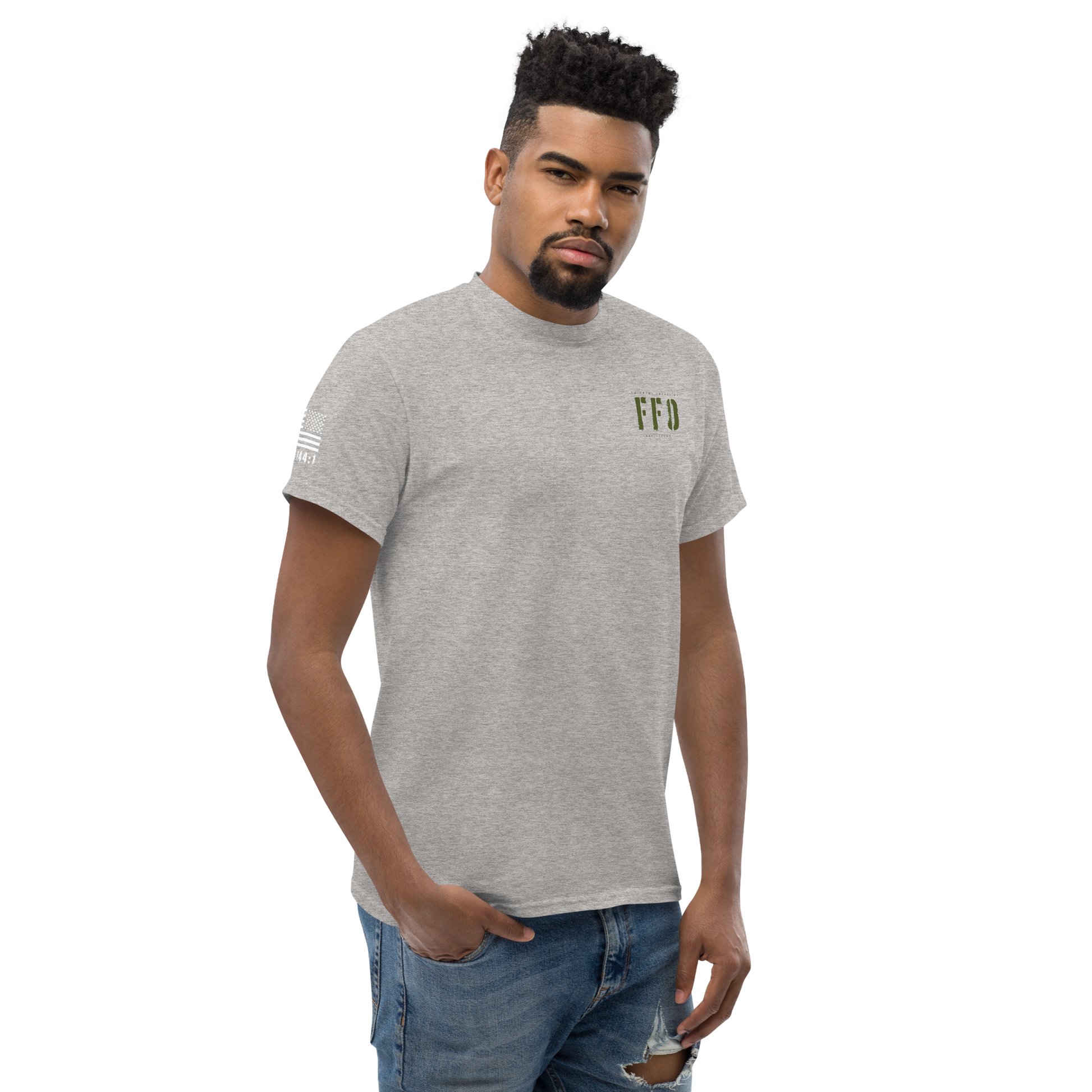 No frills, just fire. This stripped-back design leaves the talking to the scripture—Psalm 144:1 standing strong on the back, a declaration of divine training and warrior identity. Built for those who sharpen skill with purpose and fight with faith. Special Military Green and White version will surely show where you came from.