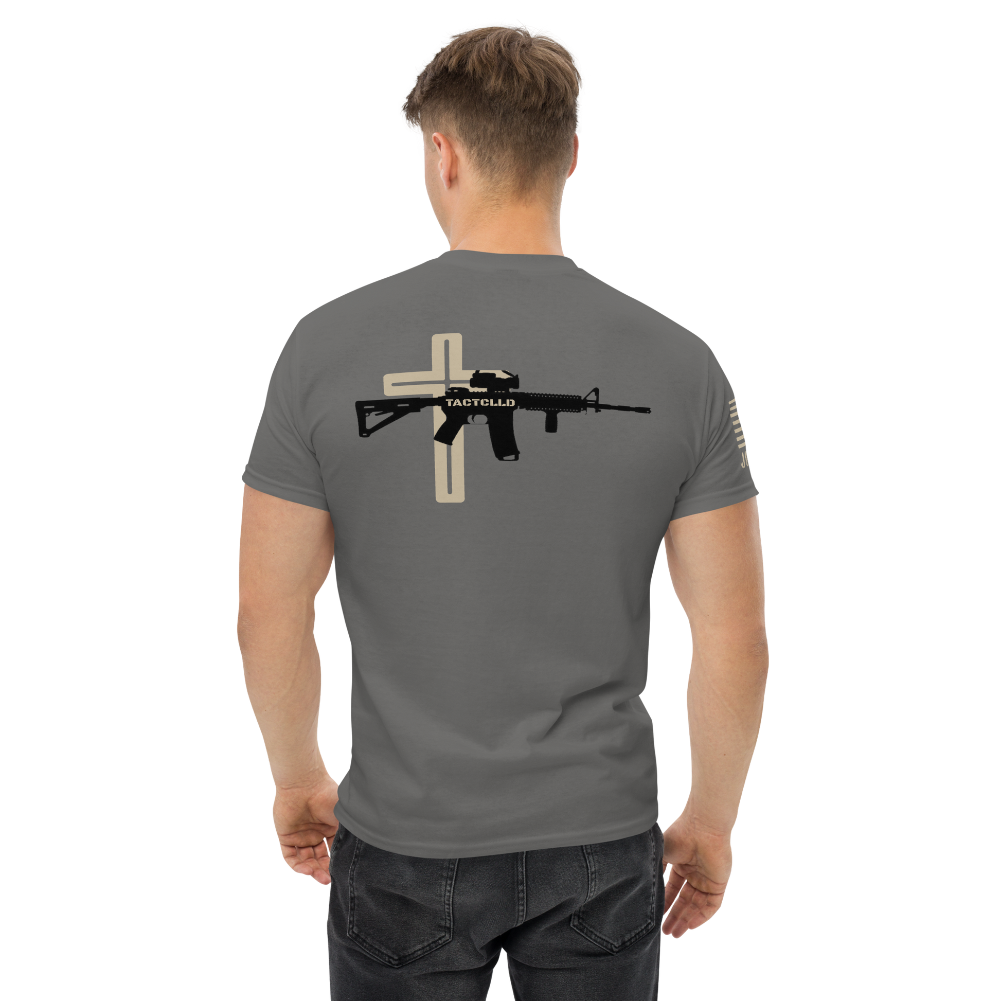 Lock in. Load up. This isn’t just a shirt—it’s your spiritual loadout. Featuring a rugged cross fused with a battle-ready firearm, this design declares your allegiance to the ultimate Commander. “TACTCLLD” isn’t just a word—it’s your call sign in the fight for faith. Inspired by John 3:16, this tee is built for those who carry belief like a weapon and walk like warriors.
